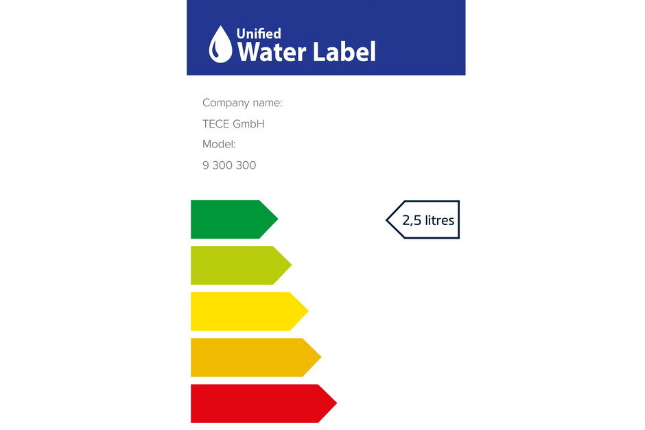 Unified Water Label یک سیستم داوطلبانه‌ی ارزیابی مصرف آب است که توسط تولیدکنندگان اروپایی تجهیزات سرویس بهداشتی مورد استفاده قرار می‌گیرد. فلاش‌تانک‌های TECE در پایگاه‌داده آنلاین Unified Water ثبت شده‌اند و این گواهی، کارایی بالای آن‌ها در مصرف بهینه‌ی آب را تأیید می‌کند.