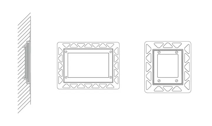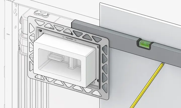 قاب نصب شامل قاب نگهدارنده با استفاده از چسبهای نصب شده در کارخانه به پنل دوغاب یا گچ تختهای متصل میشود.