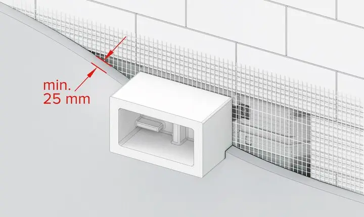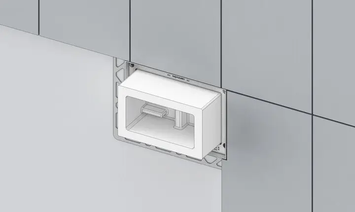 عمق قاب نصب را میتوان با توجه به ضخامت کاشی (۵-۱۸ میلیمتر) تنظیم کرد. یک مجموعه ارتقاء اضافی برای نصب دیواری سنگینتر (تا ۳۳ میلیمتر) موجود است.